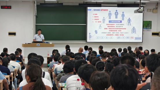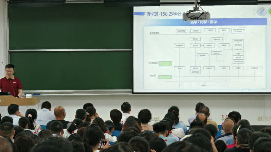 随后,吴曈勃就药学院的培养方案及发展方向进行了介绍。首先他从药学的重要意义、学院师资、人才培养方案以及就业前景等方向简述了药学专业的大致形势。接着对药学各专业的具体课程和培养计划进行详细阐释。会上他还介绍学院各专业的分流机制以及报名方式。为新生们的专业选择提供了宝贵意见。