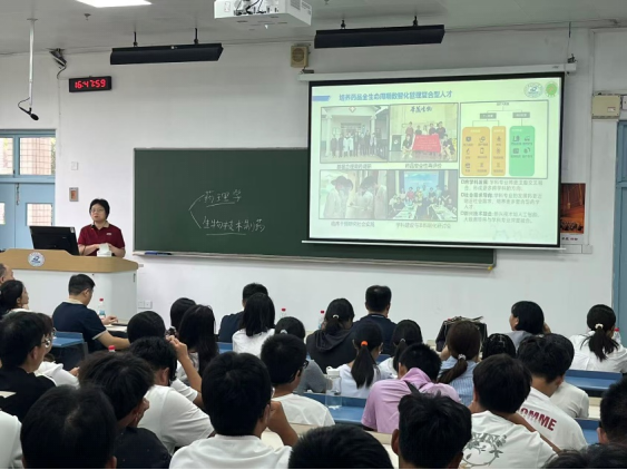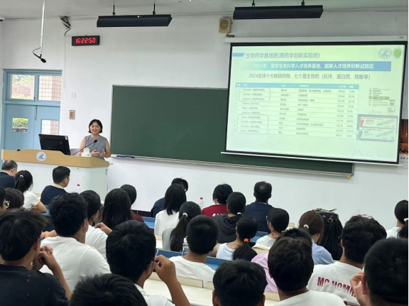 紧接着是生物药学系主任游慧娟教授对于生物药学基地班的介绍,她没有采用传统的理论灌输模式,而是从自己的专业选择经历讲起,用亲切易懂的语言,带领同学们走进生物药学的世界。游主任首先分享了自己当初选择生物药学专业的契机与心路历程,让同学们感受到专业选择背后的个人思考与时代机遇。在介绍生物药学专业核心内容时,游主任详细讲解了该专业的主要研究方向,让同学们清楚了解生物药学专业学生在做什么。同时,她还列出了专业的核心课程,帮助同学们提前规划学习重点。最后,游主任强调了生物药学的专业优势:无论是对未来从事科研工作,还是进入企业就业,生物药学的知识体系与技能培养都能提供强有力的支撑,为同学们的职业发展拓宽道路。