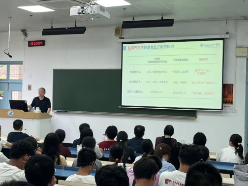 宣讲会由华中科技大学同济医学院附属协和医院药学部主任吕永宁教授开场,他用贴近生活的案例和专业的视角,为新生们打开了临床药学的大门。吕主任从大家关注的药品医保谈判切入,通过CAR-T药物这一热门创新疗法的案例,生动展示了中国创新药物研发的迅猛发展势头,让同学们深刻感受到药学领域的前沿活力与国家实力。吕主任也向同学们讲解了临床药学的专业优势,聚焦临床实践能力培养,同学们能深入医院药学部门参与真实诊疗场景,积累宝贵的临床经验,能让同学们在毕业后更快适应临床药学相关工作。