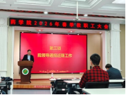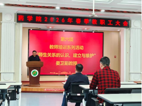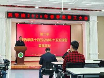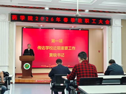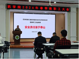 4月7日下午,药学院在五楼大会议室召开2026年春季教职工大会,院领导班子及全院教职工参加会议,党委副书记李进主持会议。