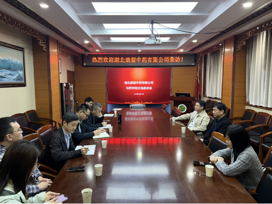 会议伊始,张志平对湖北康盟中药有限公司一行的到来表示热烈欢迎,并介绍了药学院基本情况。随后,企业代表介绍了公司发展情况及技术需求,重点围绕功能性食品研制、医用敷料与外用制剂研发等方向提出合作诉求。参会教师代表依次介绍各自课题组研究方向与技术优势,实现需求与资源精准对接。