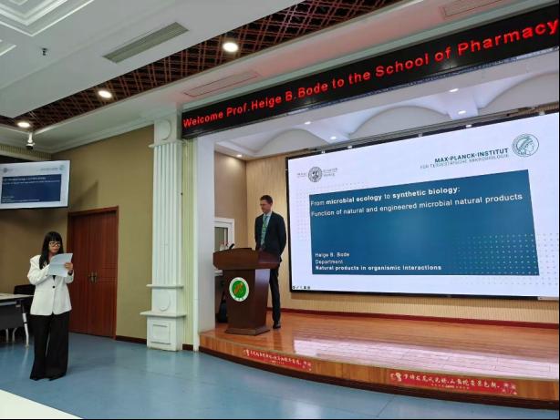 2026年4月14日,应蔡晓凤教授邀请,德国马克斯·普朗克陆地微生物学研究所常务所长、德国马尔堡大学化学生物学教授、德国法兰克福大学“歌德研究教授”、天然产物合成生物学领域知名专家Helge Bode教授到访药学院。在本次访问期间,Helge Bode教授与药学院院长黄昆教授进行了深入交流。双方围绕未来在研究生培养、学生国际交流以及科研合作等方面的合作可能性进行了探讨,并就进一步推动双方在天然产物研究与合成生物学领域的学术交流与合作达成了初步共识。
